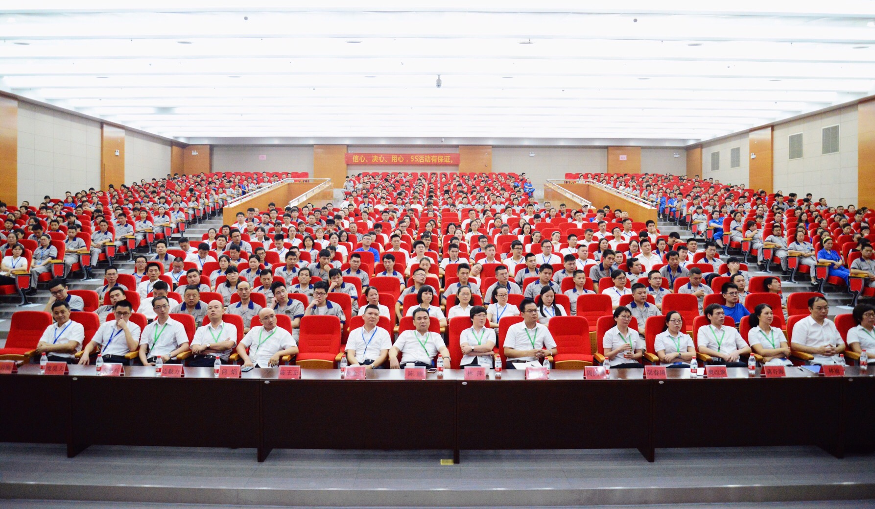 “狠下決心、強力推進、追求卓越”。7月20日上午,溫州宏豐 5S管理動員大會在甌江口廠區四樓大禮堂順利召開。大禮堂門口及廳內懸掛著5S橫幅標語,顯得醒目而隆重。