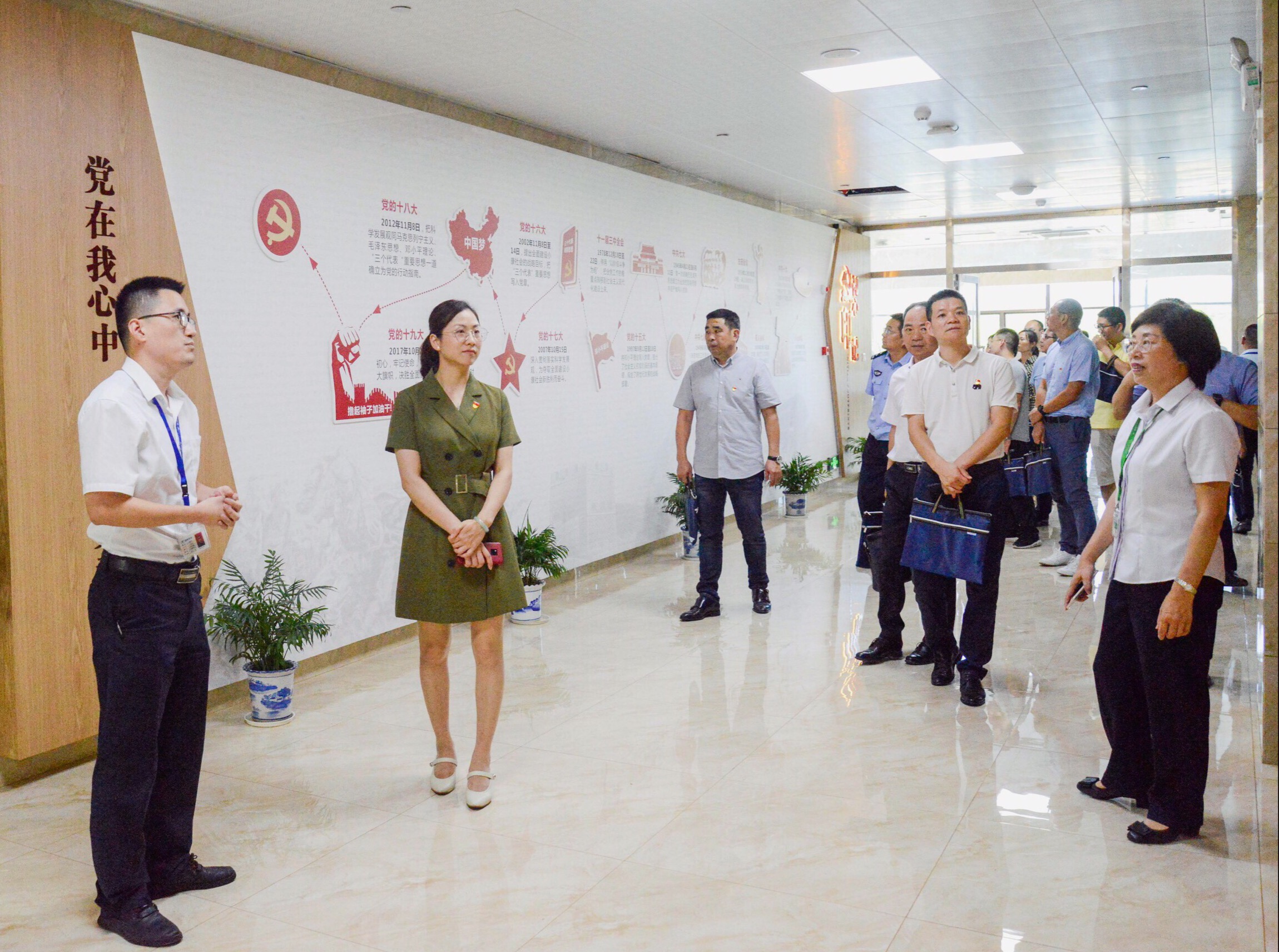 會前,黃少燕副主任一行現場參觀了公司黨建展示廳、黨建文化廊、員工健身運動館及企業俱樂部文化墻。黨支部書記龐昊天向參觀團一行匯報了溫州宏豐的發展概況、黨組織架構、黨建工作開展情況及經驗做法。溫州宏豐黨支部自2010年8月成立以來,從企業的實際出發,積極創新黨建工作形式,使黨建工作開展得有聲有色。公司良好的黨建文化氛圍受到了黃少燕副主任與隨行各位領導的一致好評。