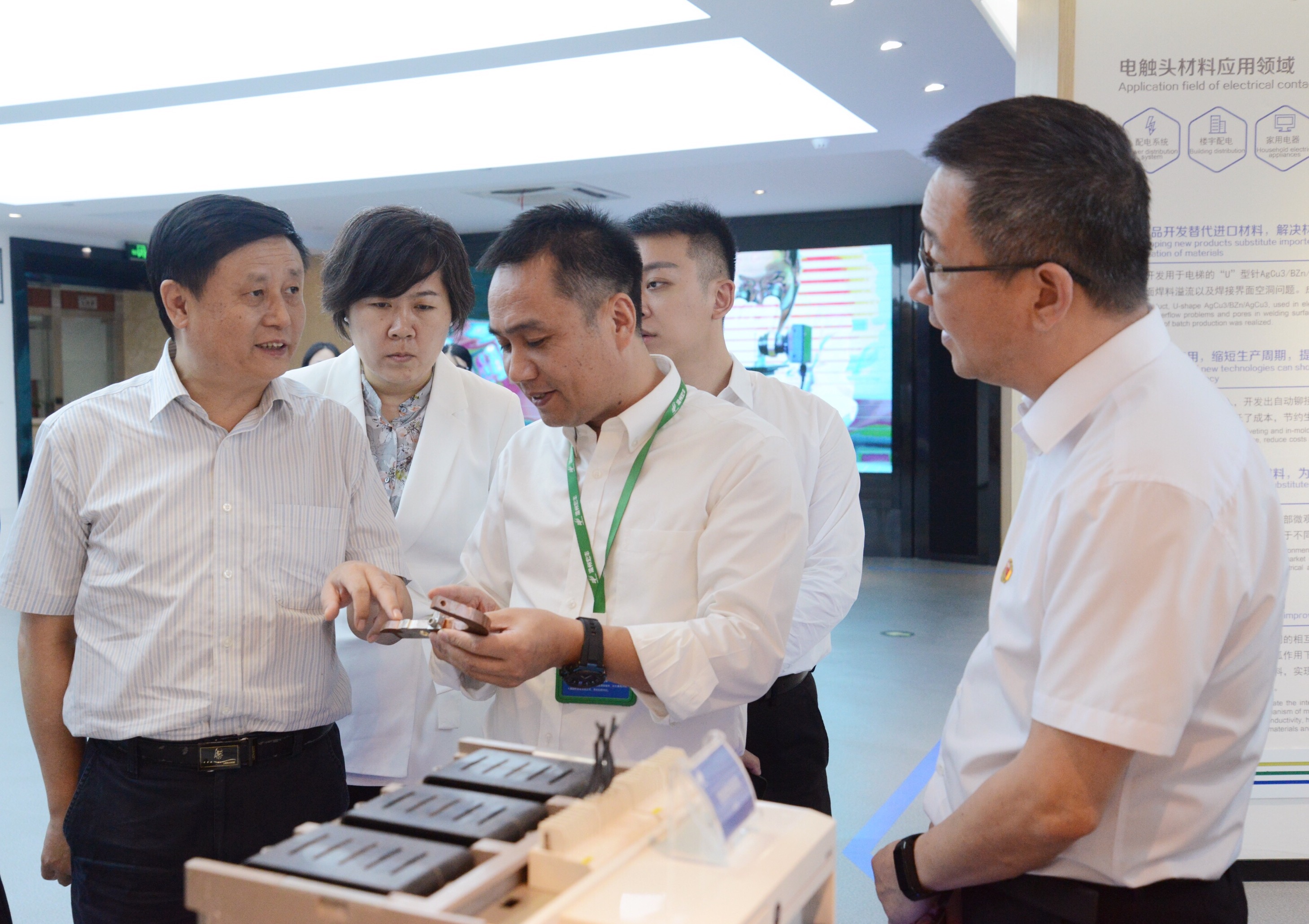 于立志巡視員一行參觀了公司展示廳、CNAS國家認可實驗室、省級重點企業研究院及博士后工作站,詳細了解了公司的生產經營情況,并就電接觸材料行業的發展和前景與董事長陳曉進行了交流。