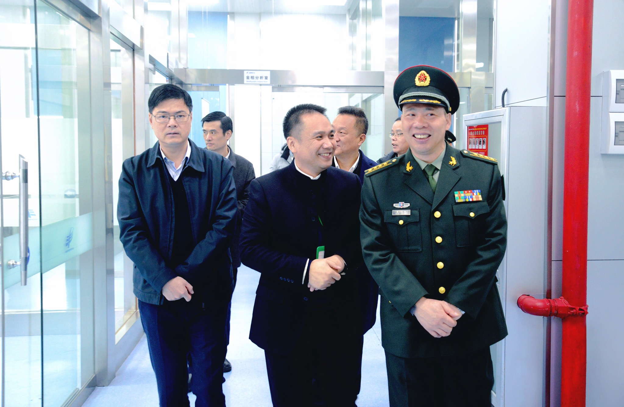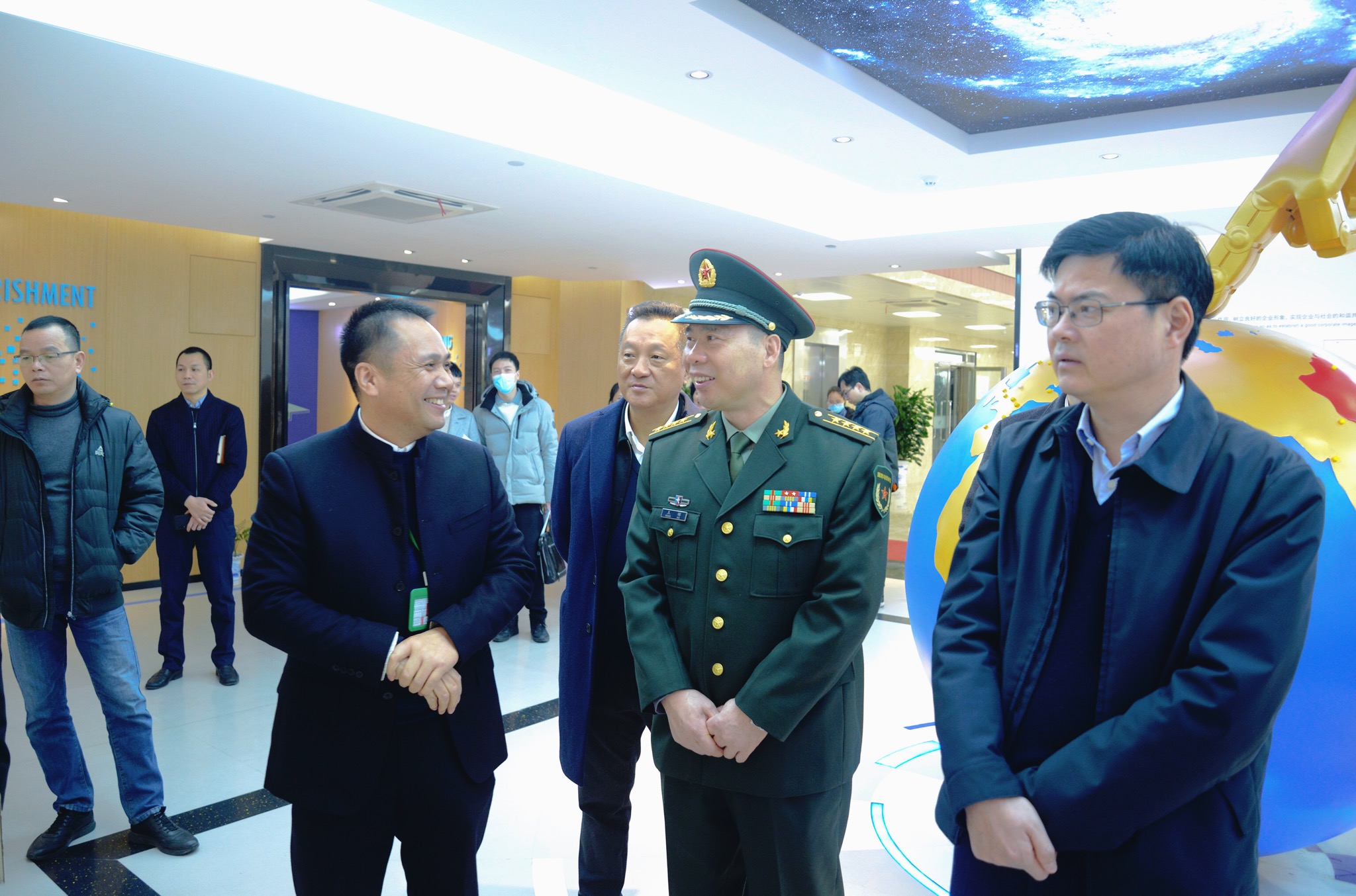 調研中,王輝司令員、陳應許副市長一行先后參觀了世界宏豐展示廳、省級重點企業研究院、CNAS國家認可實驗室。董事長陳曉對企業發展現狀、經營狀況以及未來發展規劃等做了詳細介紹。王輝司令員、陳應許副市長認真聽取匯報后,對溫州宏豐取得的成就給予高度贊揚。