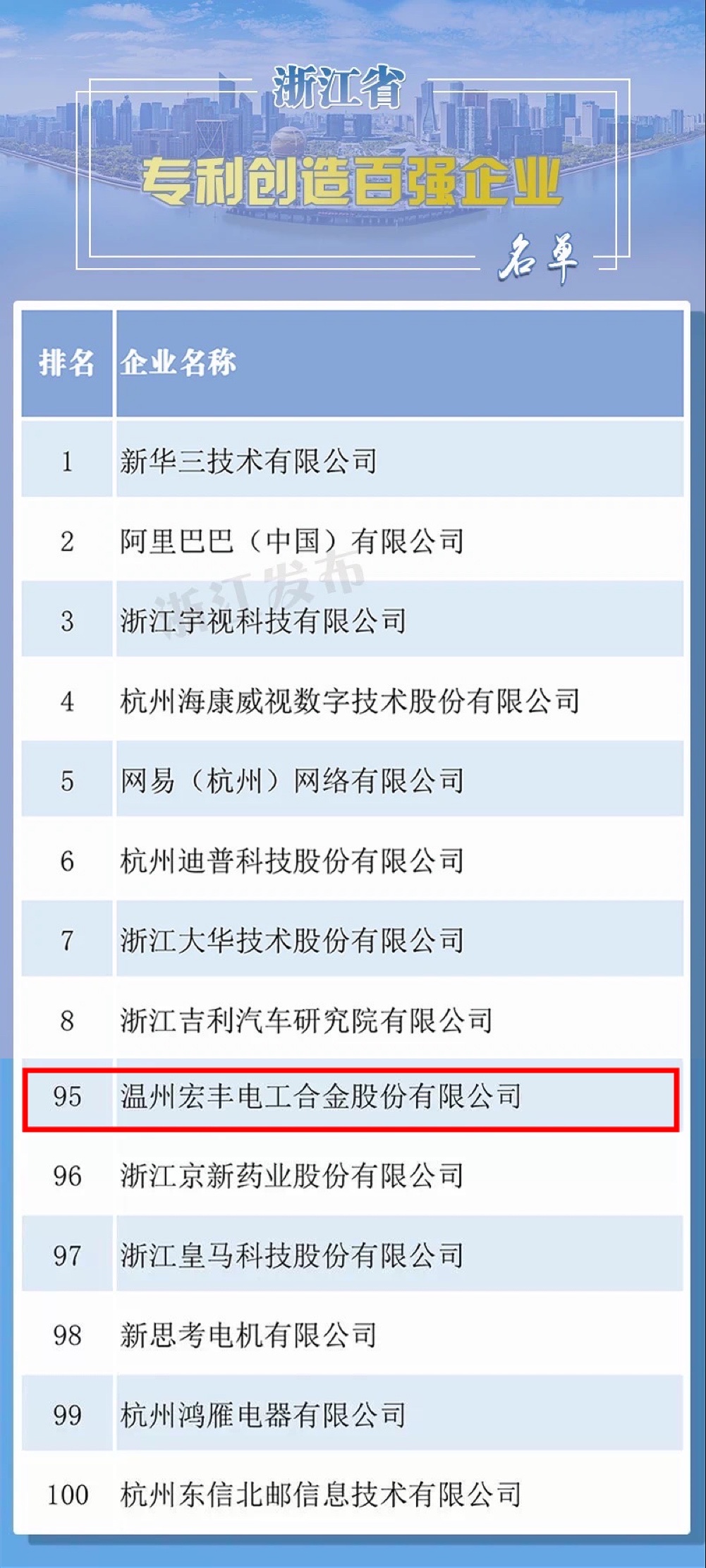 創新力就是企業核心競爭力。日前,浙江省市場監管局(省知識產權局)發布浙江省創造力百強企業榜單,該榜單以2020年底數據為基準,首次以企業有效發明專利存量、高價值發明專利量和近三年發明專利授權量為主要指標構建企業創造力綜合指數模型,并根據計算結果形成百強企業綜合指數。溫州宏豐憑借卓越的科技創新能力和豐碩的創新成果成功上榜,繼續領跑行業。